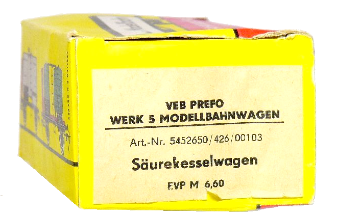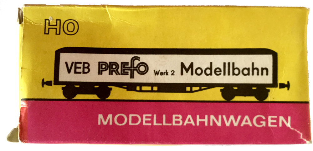 treeplank) komt in een gele verpakking van VEB Prefo Werk 2 Modellbahn.