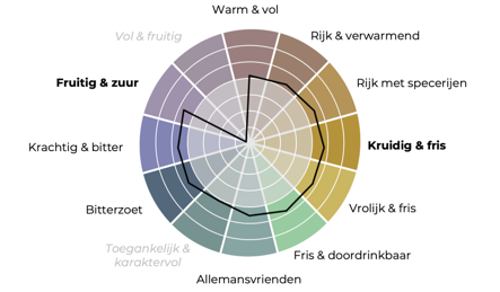 hier (regelmatig offline)Bijgaande grafiek geeft mijn smaak aan. Hieruit volgt dat ik niet echt pieken in smaak heb, ik vind eigenlijk alles lekker, behalve vol fruitig bier. En dat is herkenbaar, erg zoete snoep blief ik meestal niet. Tenzij ik lekker in de zon op een terras zit. Van een zoete witte wijn moet ik eigenlijk nooit iets hebben. En