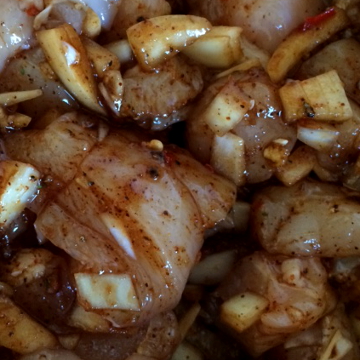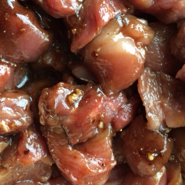 - Meng de marinade met het vlees en laat zeker een uur intrekken in de koelkast.
