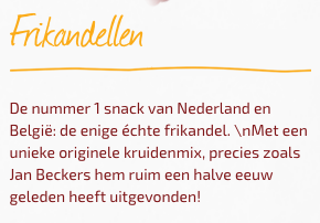 frikandel van Nederland en België, dat bedenkt die webdesigner er zelf bij. En volgens mij moet het streepje bij de echte
