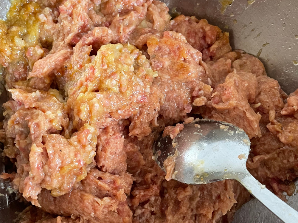 - De ui superfijn malen (met de staafmixer op baby foodstand)