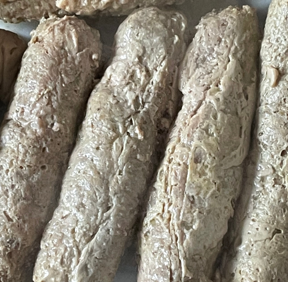 - Nu moet je van het gehat dunne staven maken. Dit kun je doen door het gehakt in een pijpje te duwen, of om deze in plasdtic te wikkelen.