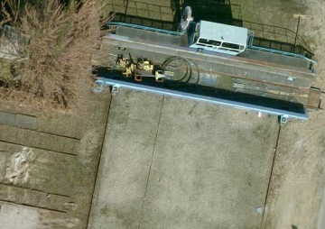 Rolbrug voor een grote remise. Enkele sporen liggen er nog.