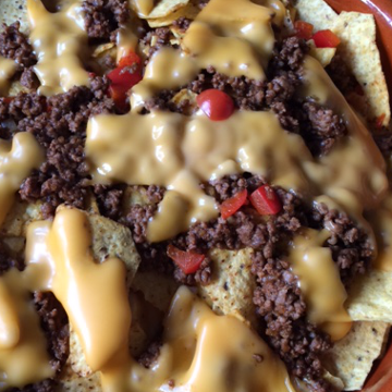 - Hierop laagjes met iedere keer: nacho, gehakt, groenten, kaas etc