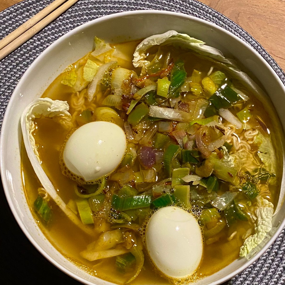Hieronder de ingrediënten per persoon. Je eet Ramen in een kom. Ieder zijn eigen kom. Dus je kunt ook iets weglaten/aanpassen per persoon.