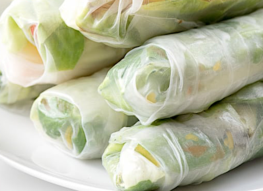 Vietnamese spring rolls zijn kleine rolletjes waarin groenten, fruit en glasnoedels zitten. Het deeg erom is doorzichtig dus je kunt gezellig de ingrediënten zien zitten, gebruik dus vrolijke kleuren.