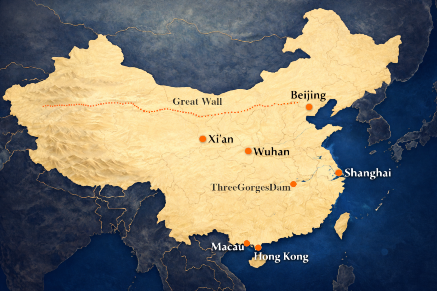 Misschien wel het meest bekende bouwwerk ter wereld. hoewel dat ook wel de piramides in Egypte kunnen zijn. De muur ligt hoofdzakelijk in het Noordelijke deel van China. metname in ontoegankelijke bergachtige gebieden. Op een kleine 80 kilometer ten noord westen van Beijing ligt de Badaling sectie. Vanuit Beijing is Badaling gemakkelijk per trein en bus bereikbaar. Het is dan ook het meest bezochte deel van de Chineze Muur. Dit deel was het eerste deel dat voor toerisme werd opengesteld.