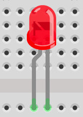 - Op het breadboard zie je een rood ding. Dat is een lampje. Net als overal in huis merk je dat ouderwetse gloeilampjes overal worden vervangen door een LEDs. Een LED is dus een soort lampje.