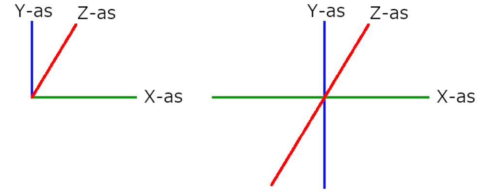 Als we een de volgnde waarden krijgen X=10, Y=0, Z=-10. Dan weten we dat het object 10 positieies naar rechts gaat, niet omhoog gaat en eenzelfde aantal posities naar voren komt (naar ons toe komt).