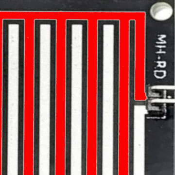 Met dit component kun je regendruppels meten. Het bestaat uit een groot onderdeel waarop een printplaat is geetst. De ets ziet eruit als een aantal vingers aan een hand. En een andere hand die daarmee verweven is.