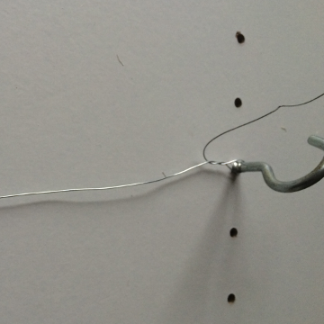 Pak nu een tang en klem de ijzerdraadjes aan de onderkant vast. De andere kant van het ijzer zit nog vast aan de haak.