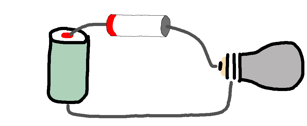 In de afbeelding hieronder staat een eenvoudige stroomkring. Een batterij en een gewoon lampje.