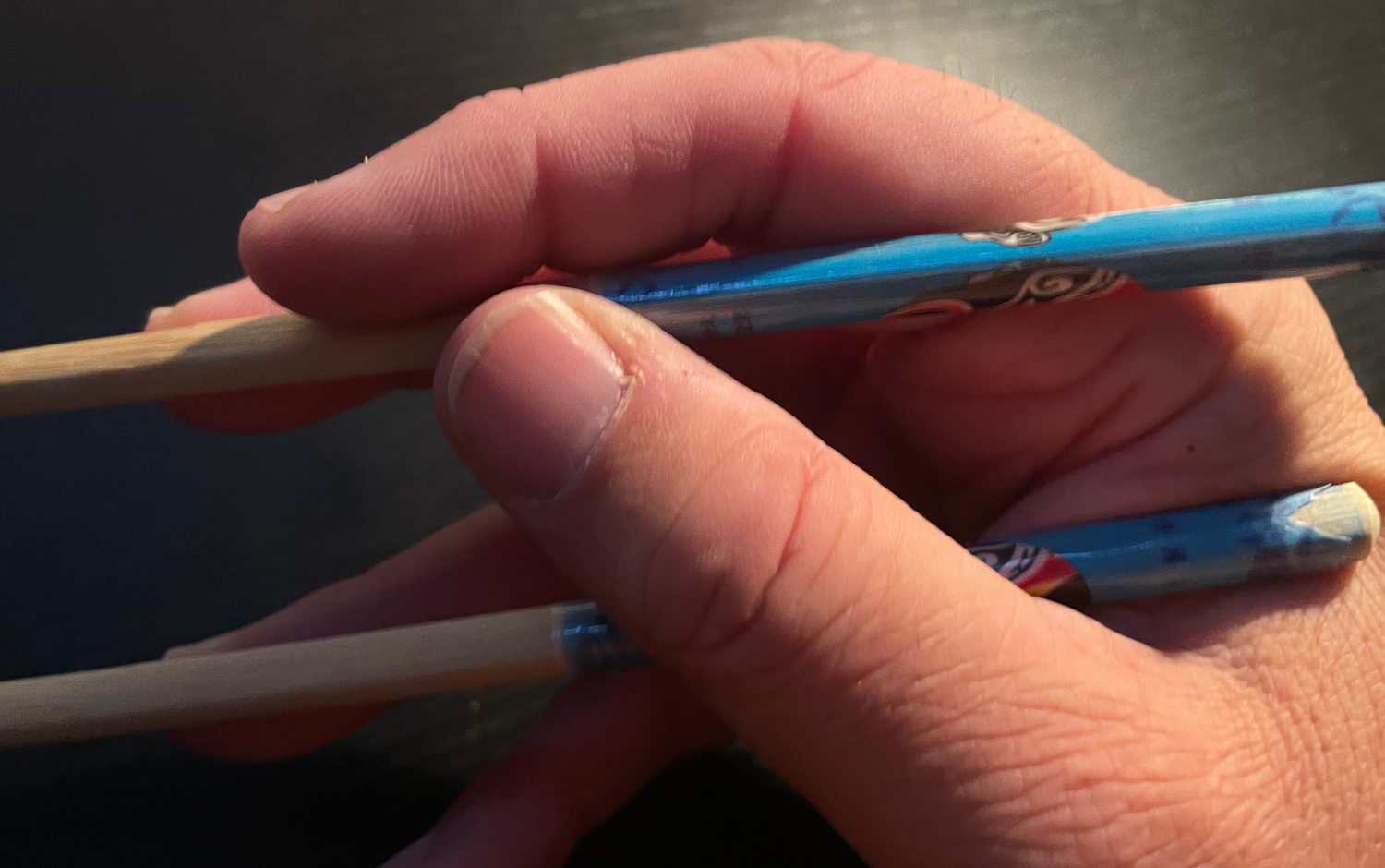 Het zal je misschien verbazen maar het zijn altijd twee stokjes. Het zal je verbazen maar die moet je anders vasthouden en gebruiken.