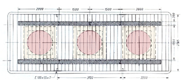 Hier een bovenaanzicht tekening van de wagonindeling. Zoals gezegd met ruimte voor 3 rollen. Gezien de tekening stonden de rollen op hun zijkant.