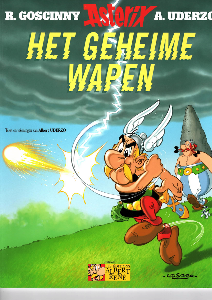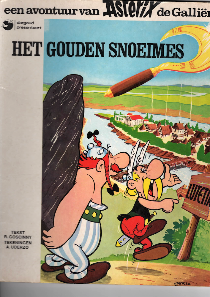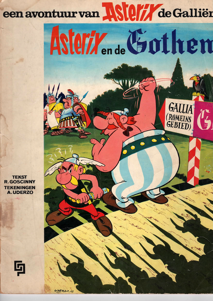Bovenin staan de namen van Goscinny en Uderzo in het