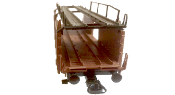Een kleine wagon waarin plaats is voor 4 wagons. 2 onderin en 2 bovenin. Hiervoor lopen er onder- en bovenin geleide groeven voor de wielen.